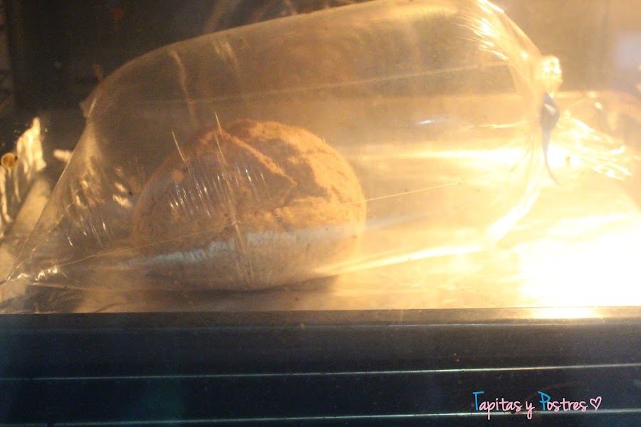 Al horno. Se mete en frío. Al rato vereis como se hincha la bolsa.