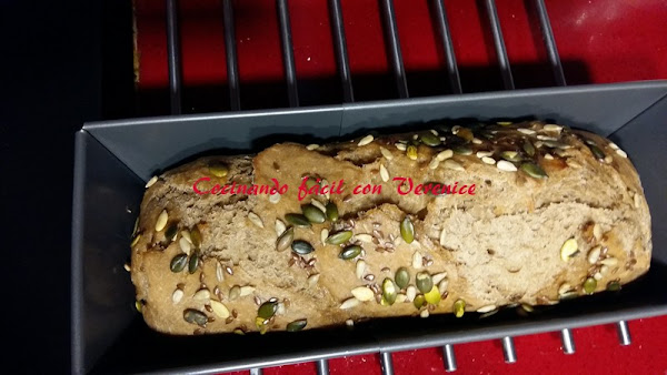 Mezclar todos los ingredientes en el bol de la amasadora, excepto la mantequilla y las semillas.