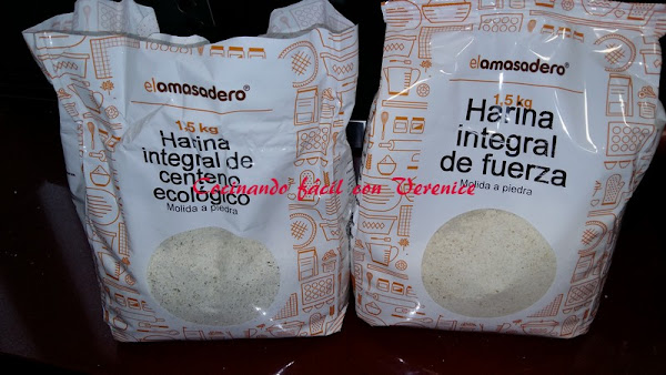 La verdad es que yo no sabía que existía ésta última, he usado mucho la de fuerza y también la integral pero¿juntas? pues no, pero mira por dónde la encontré en éste proveedor y la compré para probar. Ni una pega tengo, la mezcla fue una explosión de sabor, fuerza y al mismo tiempo esponjosidad. Si no tenéis de éstas podéis ponerle tranquilamente una normal de centeno y otra integral o de integral solamente.