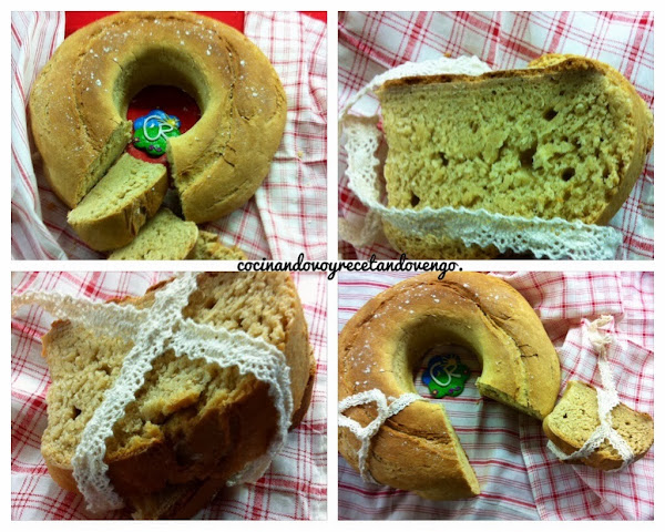 Dejar enfriar levemente sobre la encimera de la cocina y cuando podáis tocar el recipiente central sin quemaros lo retiráis del pan y a disfrutar de vuestro "Pan Cateto" El formato Rosca es muy cómodo para cortar rodajas de pan y cunde mucho, siendo todas las rodajas del mismo tamaño.