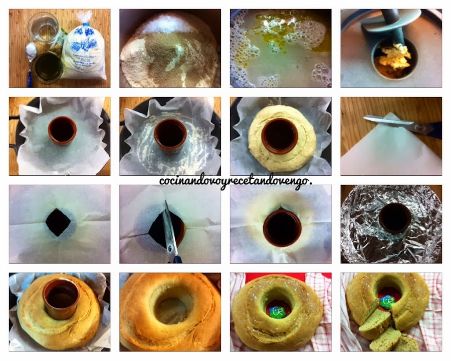 Ahora comenzamos a preparar la tapadera para hornear el pan, si tenéis un recipiente apto para horno y con tapadera mucho mejor, pero en esta ocasión tenia ganas de hacer una rosca y me fabriqué el molde y la tapadera.