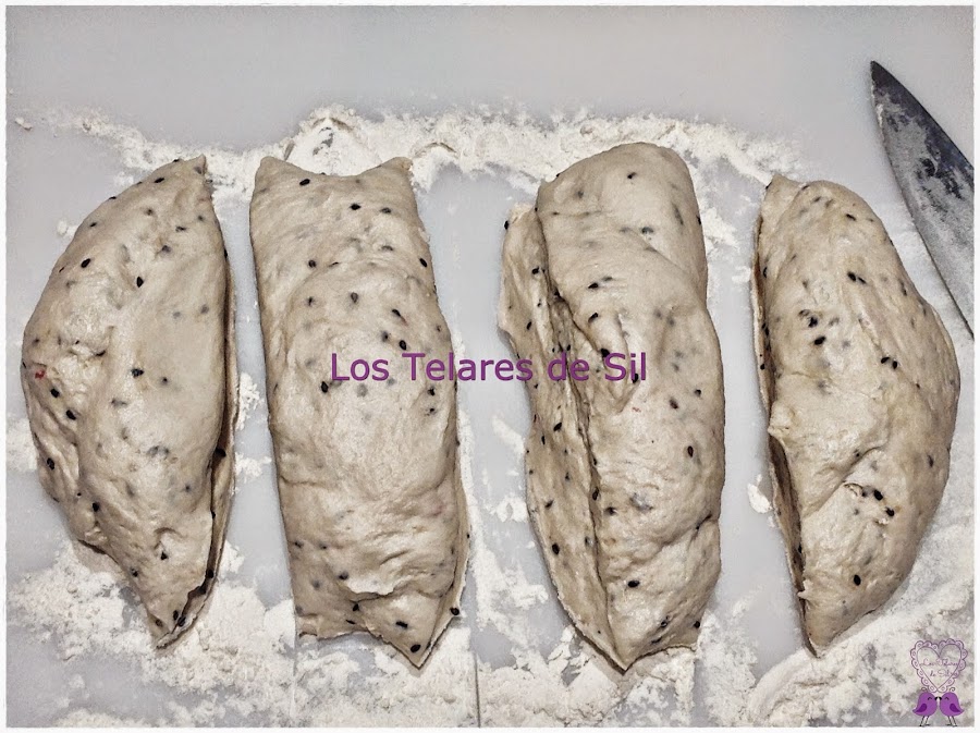 Enharina la superficie donde le vas a dar forma y con un rodillo de madera extiende cada porción dándole forma de óvalo. Más o menos de unos 25 cm de largo.