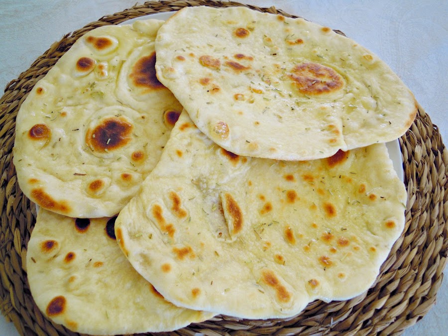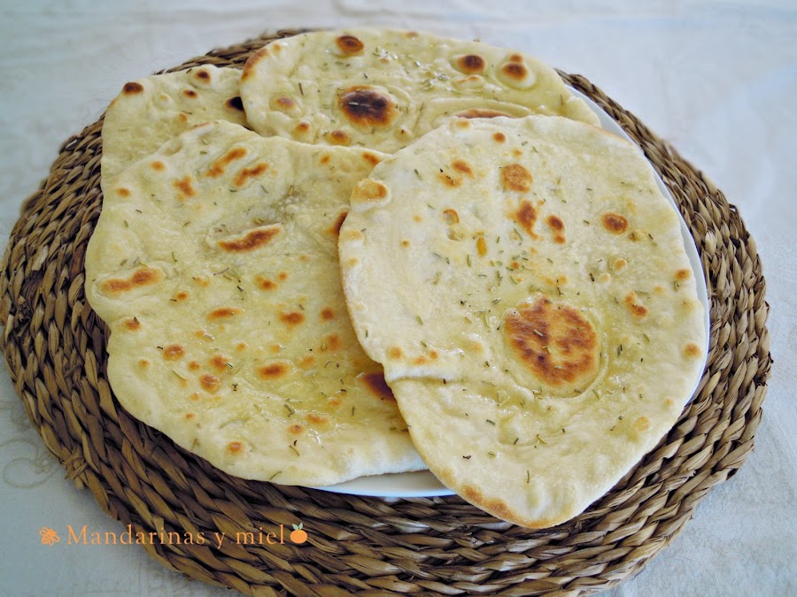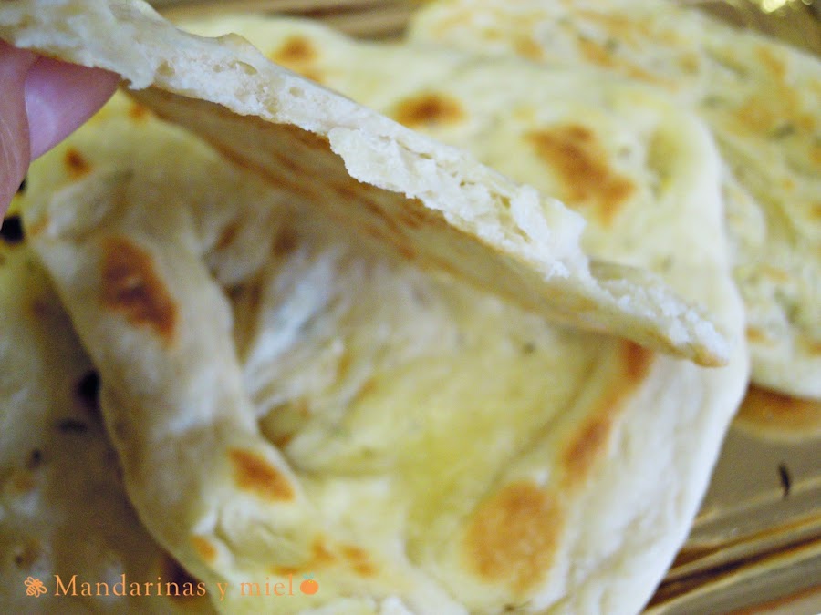 He querido darle un toque más mediterráneo a este pan Naan, por eso le he puesto romero que me encanta su sabor en el pan y la he cambiado la mantequilla que suele ponerse por aceite de oliva.......y os aseguro que estaba riquísimo!!