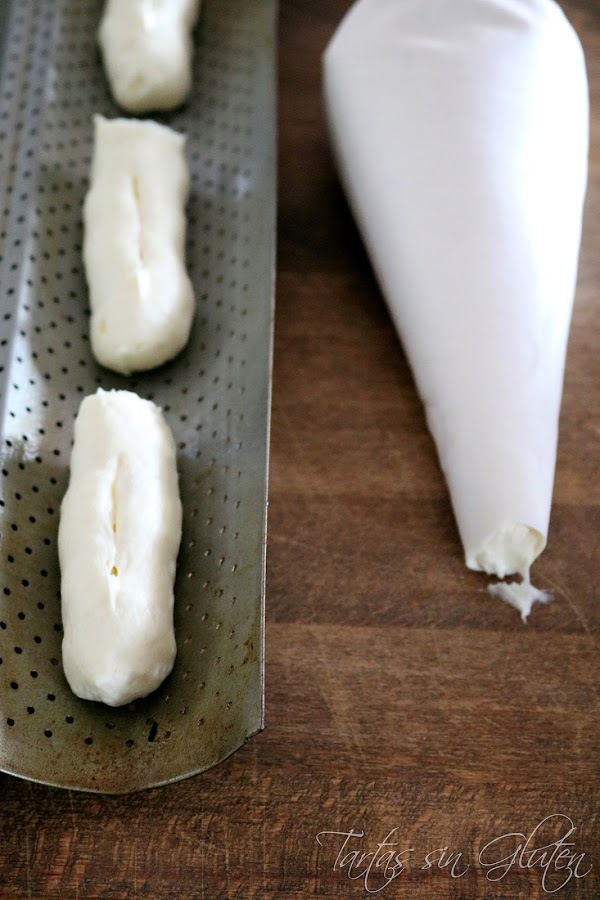 Pasada la hora , usando la lengua desgasificamos la masa y la colocamos dentro de una manga pastelera, de esta forma podremos formar pequeños rulos uniformes sin mancharnos las manos.