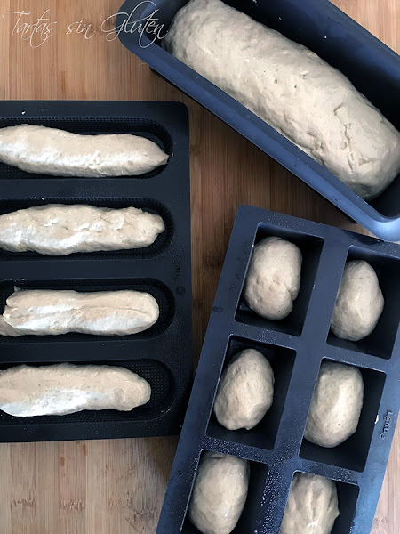 Metemos los moldes en el horno, primero los del mismo tamaño y con un spray les rocío con agua. Horneamos 25-30 minutos.