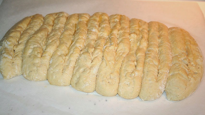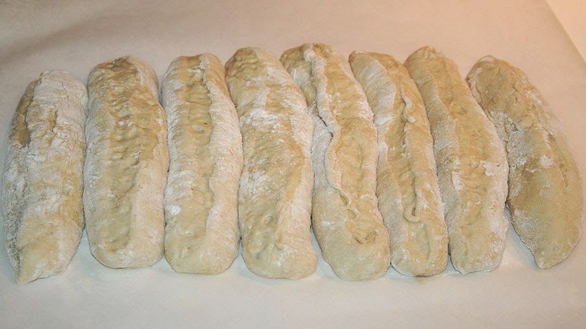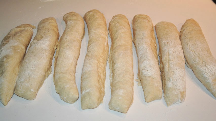 Dale forma a cada pan y pon cada uno de ellos de lado uno junto a otro en el papel del horno.