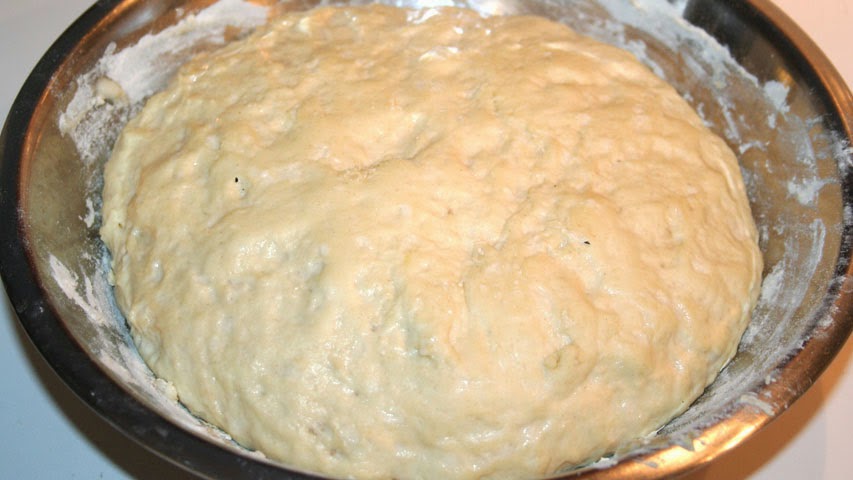 Tras mezclar todos los ingredientes en una bola de masa, se deja reposar tapada en el bol hasta que suba prácticamente el doble de su tamaño