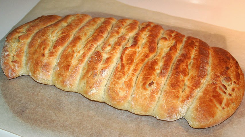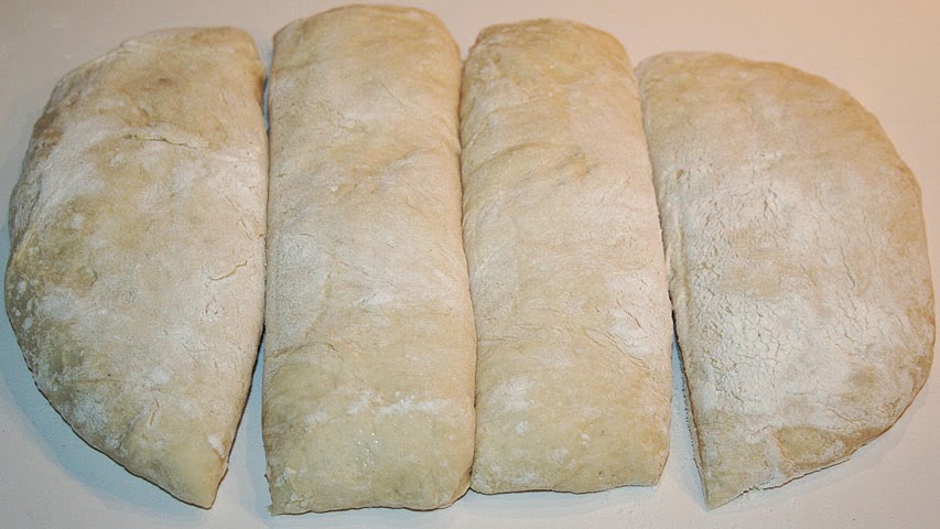 Cuando haya subido la masa se aplasta un poco y se le da forma más o menos rectangular.