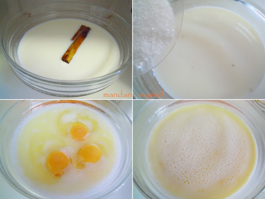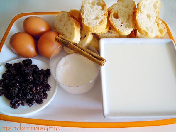 Recordé esta receta y saqué el libro para ver que llevaba....pan del día anterior, leche, huevos, canela.....tenía de todo, así que me puse a prepararla!!