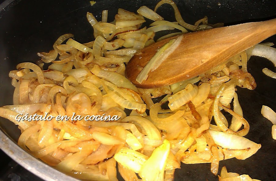 Hacemos la cebolla con una cucharada de mantequilla y dejamos caramelizar.