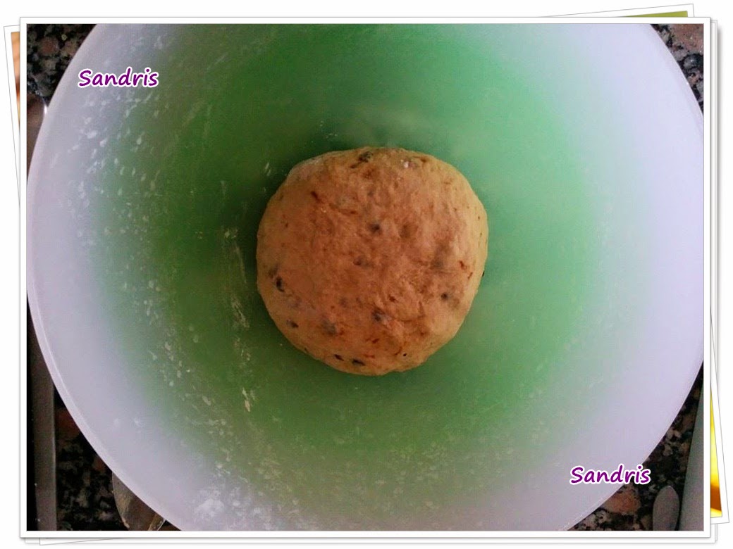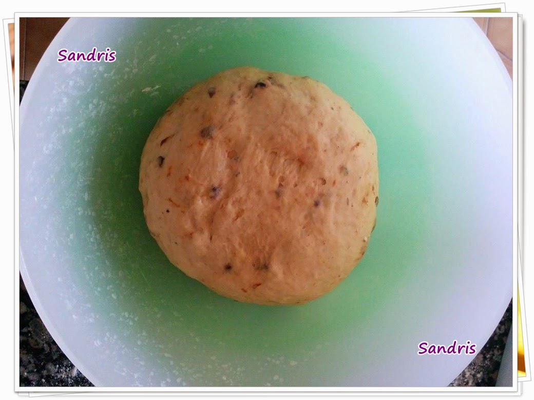 Luego por otra parte, mezclamos la harina, el azúcar, el cardamomo, la canela, las ciruelas pasas y la sal. Y esto lo juntamos con la mantequilla, el huevo y el pre-fermento que ya previamente había batido. El resultado de todo esto, es una masa parecida a la del pan pero no tan elástica. Lo dejamos reposar hasta que doble el tamaño, en un bol tapado y fuera de la nevera.