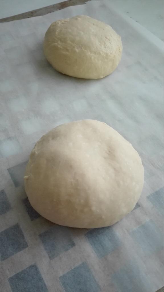 Desgasificamos, le damos forma redondeada y tensa y volvemos a dejar reposar sobre la bandeja cubierta con papel de horno tapada con un paño limpio.