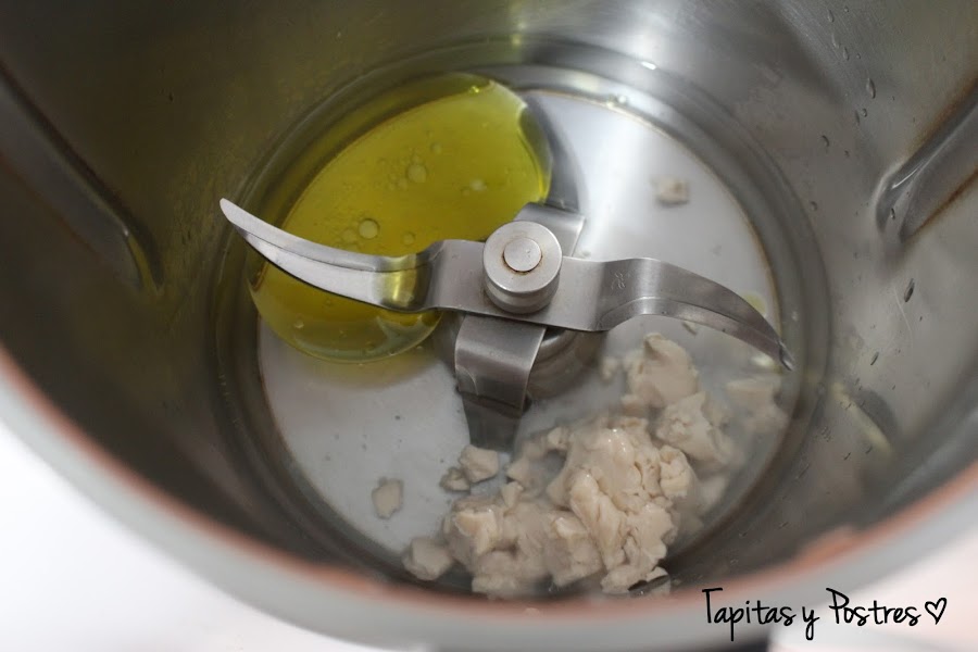 Ponemos en el vaso de la thermomix el agua, aceite y levadura desmenuzada. Programamos 2 minutos, 37º y velocidad 2.