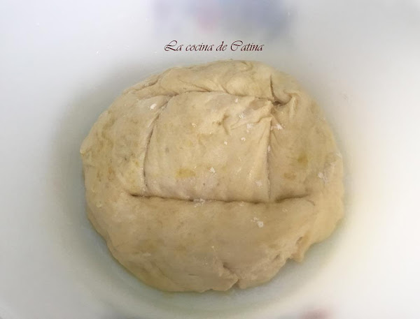 hacemos unos cortes con un cuter o un cuchillo bien afilado, pincelamos con aceite de oliva y espolvoreamos con harina. Metemos al horno durante 30 o 35 minutos con calor arriba y abajo.