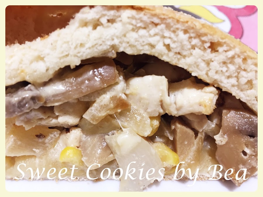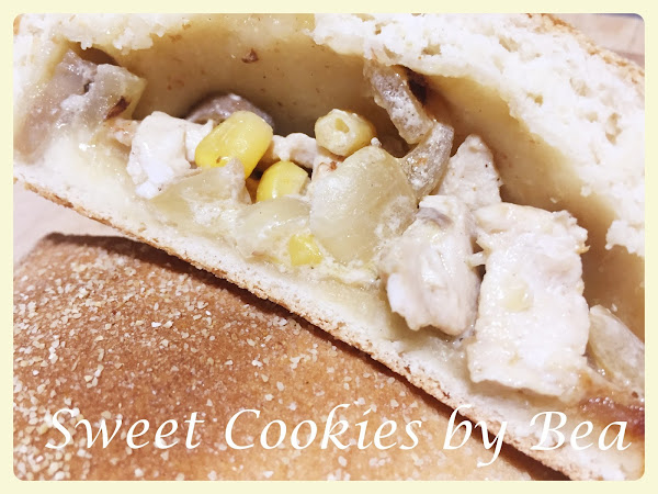 Aquí he aprovechado masa de pizza que hice una y quedó tan fina que sobró masa para otra tanda y por no comer dos noches lo mismo y porque había mono ya de este pan relleno toco pan relleno de pollo