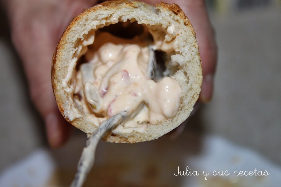 Queda con una bonita presentación y ademas está muy bueno. Y tranquilos no tendréis que hornear el pan si no queréis, yo no lo he hecho, solo comprar unas bagetinas y listo.