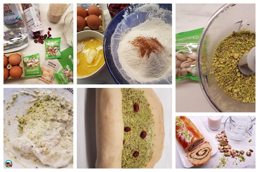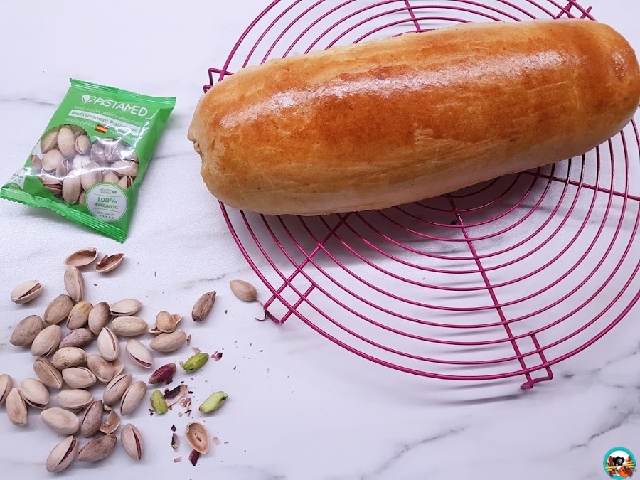 Pan relleno de pistachos y algunos arándanos rojos. Una buena receta que podéis hacer ahora que todos estamos obligados a estar en casa y disponemos de mucho tiempo para dedicarle más tiempo a la cocina.