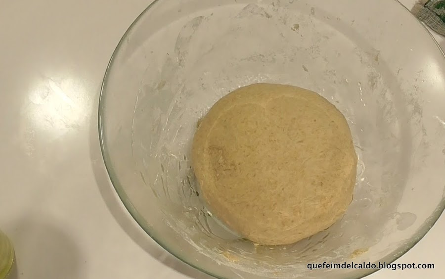 Ponemos un chorro de aceite al bol para evitar que se pegue e introducimos la bola de masa al bol.