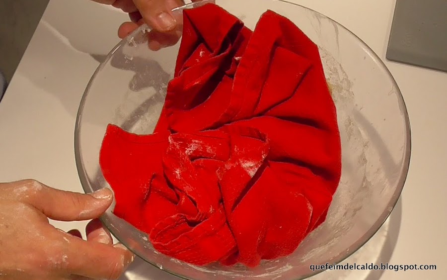 Tapamos con un paño de cocina y dejamos reposar durante 2 horas.