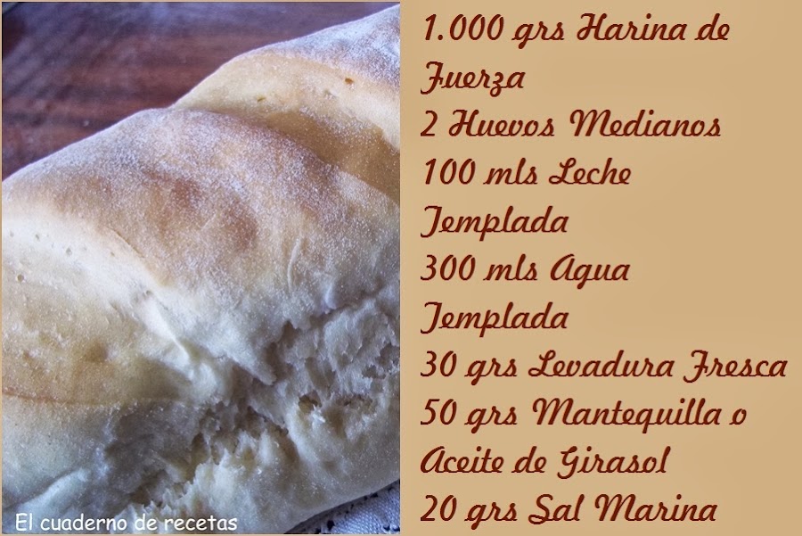 *Con estas cantidades salen dos panes de 8oo grs. si sois menos en casa y no necesitáis tanto, sólo tenéis que dividir los ingredientes indicados.