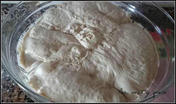 Primero prepararemos el poolish mezclando la harina con el aguay la levadura (si es fresca la disolveremos previamente en un poco de agua templada). Tapamos el bol donde hayamos hecho la mezcla con plástico y lo dejamos fermentar de 12 a 16 horas a 21ºC.