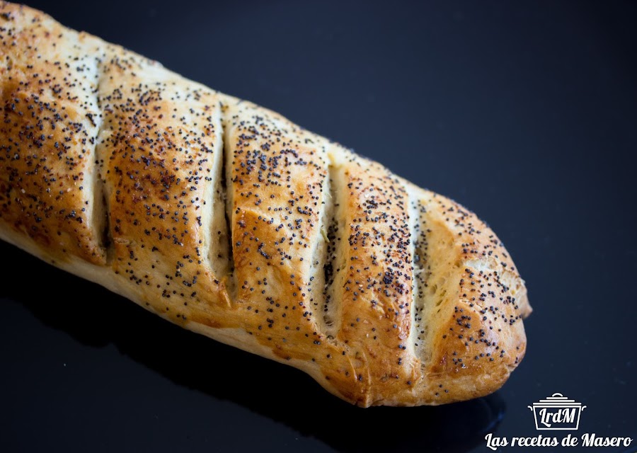 En las fotos os muestro el pan que hice en el curso, que es el de semillas de amapola y luego el que hice yo en casa con sésamo, podéis añadir lo que más os guste: orégano, queso rallado, ajo en polvo, a la masa y a la hora de hornearlo espolvorear semillas de amapola, sésamo, pipas... todo al gusto del consumidor, una receta muy versátil que admite un montón de combinaciones.