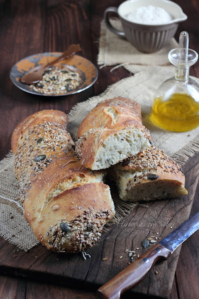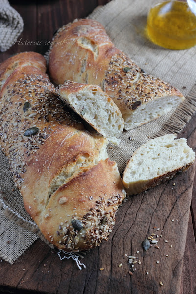 Espero que os guste y os animéis a preparar esta receta. Aunque requiera mucho tiempo, lo agradeceréis con el resultado. Es un pan delicioso, con una miga jugosa y una corteza crujiente. Además las semillas le dan un toque delicioso. Un auténtico pan de panadería!!