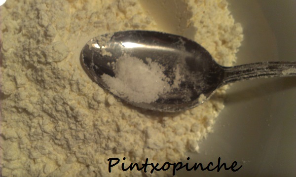 Disolvemos la levadura en agua templada o caliente. He usado unos 3/4 del taquito de Levital sin gluten.