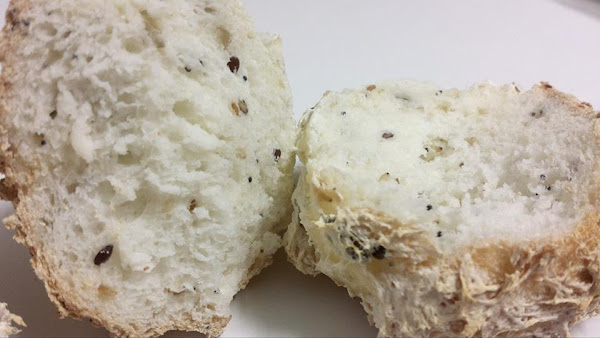 Mezclamos la harina, la sal, la levadura y las semillas, añadimos el agua y el chorro de aceite y amasamos unos 5min (yo he usado el robot de cocina)