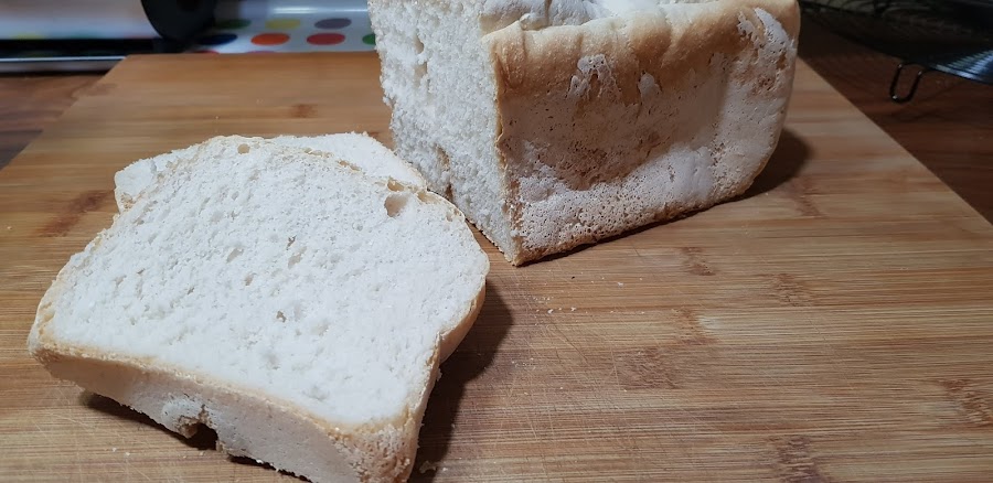 1. Ponemos los ingredientes líquidos en la panificadora (aceite y agua). 2. Ponemos en la cubeta los 2 gr de sal 3. Agregamos la levadura fresca sin gluten y la hacemos trocitos 4. Ponemos toda la harina sin gluten y el programa "sin gluten" de nuestra panificadora. 5. Transcurrido el tiempo sacamos el pan de la cubeta y dejamos que se enfríe encima de una rejilla.