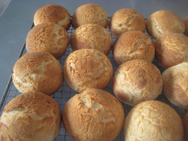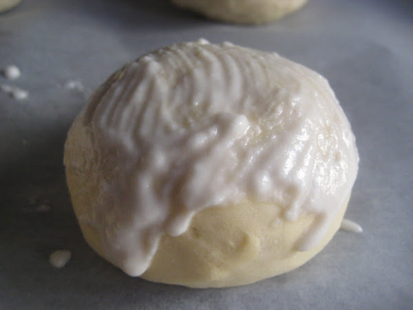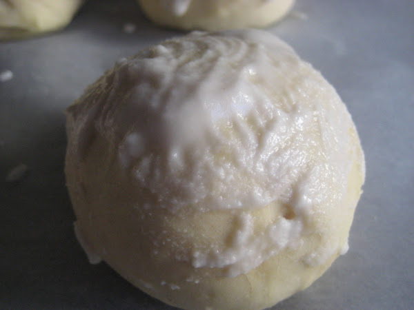 Para hacerla masa: Poner en un bol o en la amasadora ,todos los ingredientes indicados ,menos la sal y la margarina o mantequilla. Amasar al menos 5-10 minutos y agregar la mantequilla o margarina y la sal. Volver a amasar, 5-8 minutos y dejar reposar la masa tapada al menos 20 minutos .Pasado este tiempo de reposo, dividir las piezas en porciones de 70 a 65 gr. y bolear. Colocar en bandeja de horno forrada con papel y dejar fermentar entre 1 y 2 horas, depender del lugar en el que se haga, bien tapados los panecillos para que no formen corteza. Cuando ya estén fermentados los panecillos, , mezclar bien la pintura y con un pincel y mucho cuidado poner una capita de esta pintura sobre cada panecillo. Hornear a 200º C entre 20-25 minutos. Dejar enfriar sobre rejilla antes de consumir