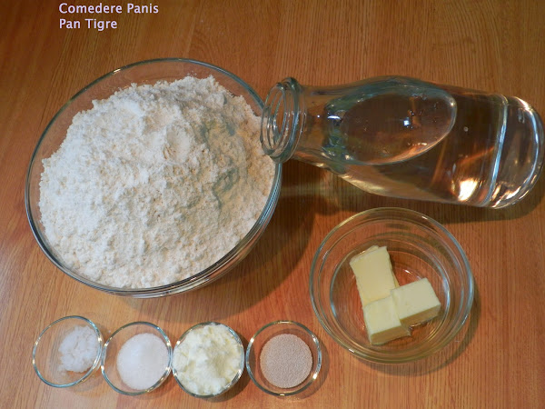 Mezcla en un bol todos los ingredientes secos ( harina, levadura, sal, azúcar y leche en polvo).