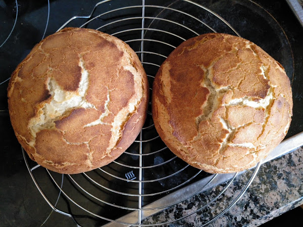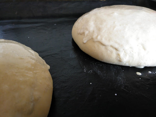 Cuando ya haya subido, volvemos a darle un corto amasado y formamos dos bollos redondinos. Los cubrimos con un paño húmedo y los dejamos levar hasta que doblen su volumen (que también dependerá de la temperatura.