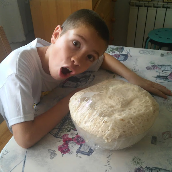 Aquí la cara de sorpresa de mi hijo cuando al volver de hacer recados varios nos encontramos esto en la cocina ( habíamos estado fuera dos horas).