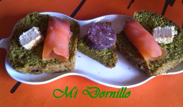 Cortamos el pan en rebanadas y servimos con queso de untar y salmón, jamón serrano, jamón york, tomate en rodajas, etc.