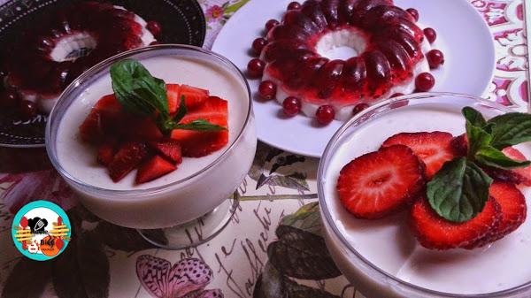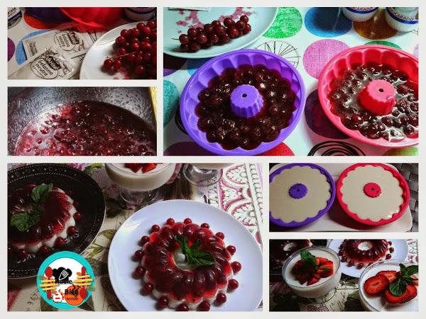 Mi versión es de: gelatina de grosella, con panna cotta de leche y yogurt natural con esencia de vainilla.