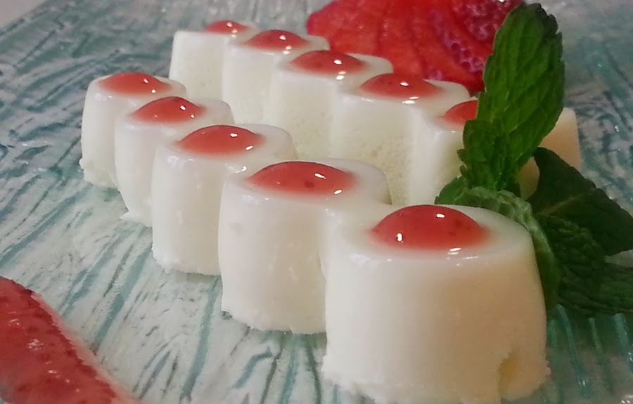 El nombre del postre es panna = nata (crema de leche), cotta = cocida, así que ya sabéis los ingredientes. No tiene nada más, un poco de vainilla y gelatina para que cuaje.