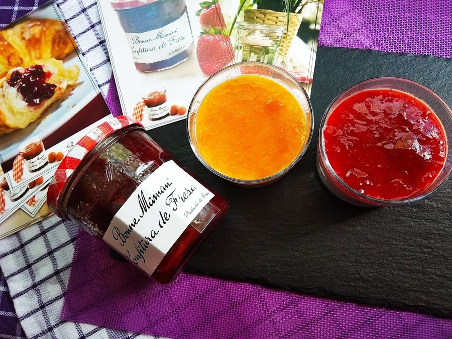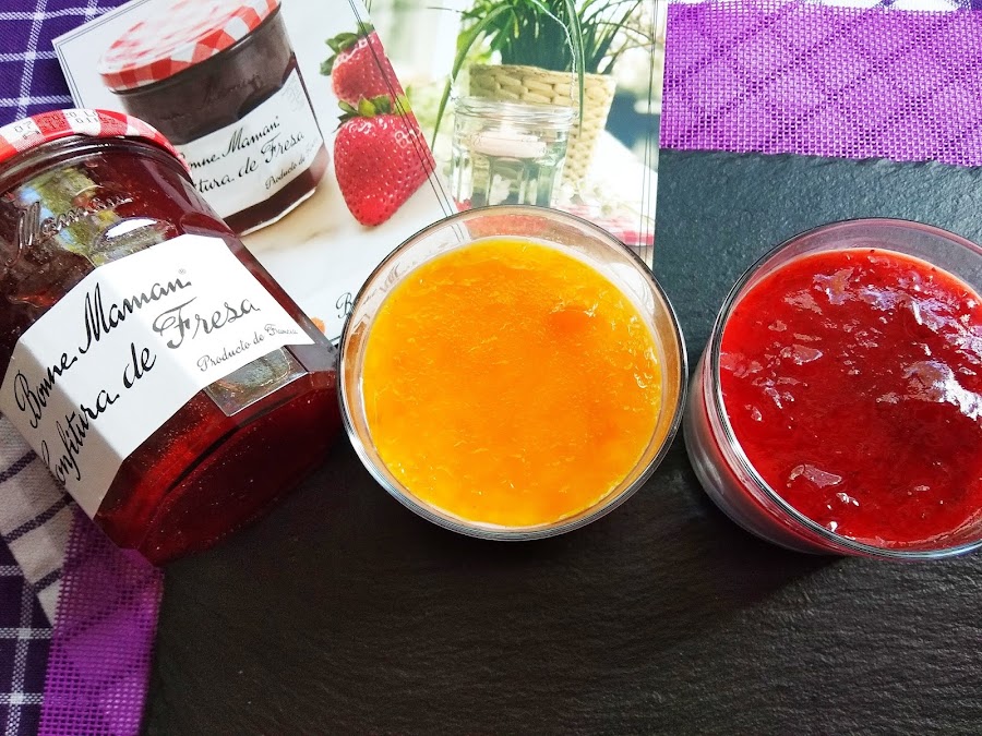 Echamos más mermelada por encima (yo he usado de fresa y de melocotón) y a disfrutar!!!