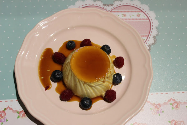 400 ml nata (crema de leche) montar, 40 g azúcar, 2 hojas gelatina, caramelo líquido.