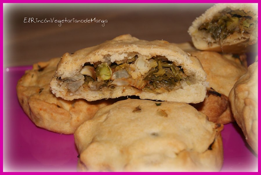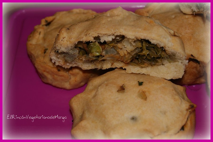Las empanadas las he rellenado con guisantes, sofritos, alcachofas y perejil.