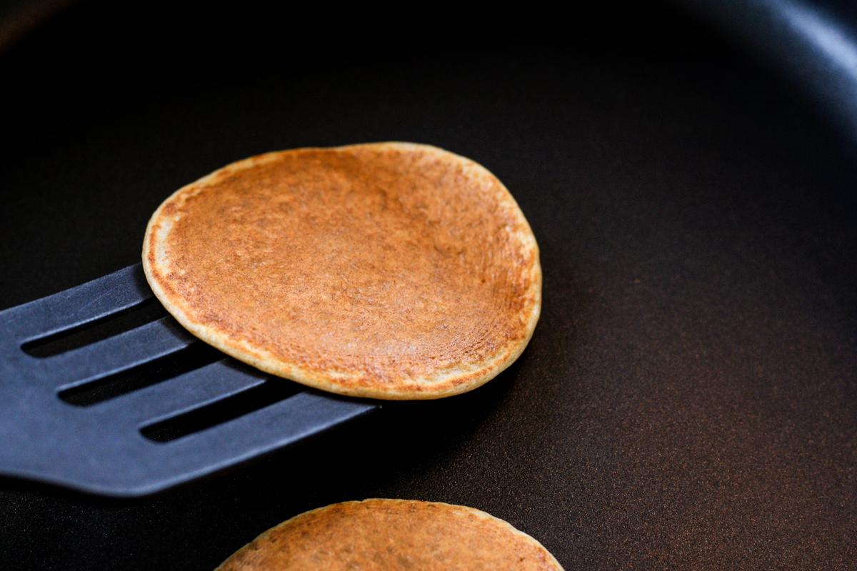 Hago estos pancakes sin ningún tipo de aceite, manteca o grasa, y todo gracias a mi sartén mágico de todo uso. Miren que yo me compré varias sartenes y panquequeras en estos años, pero les puedo asegurar que ninguna tiene la capacidad antiadherente que tiene esta que tengo ahora.