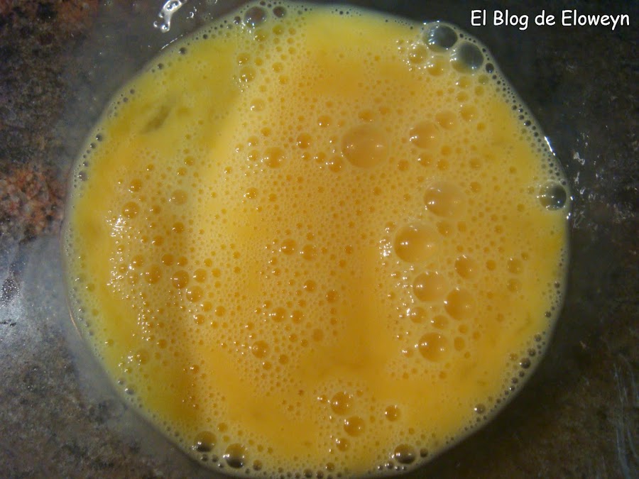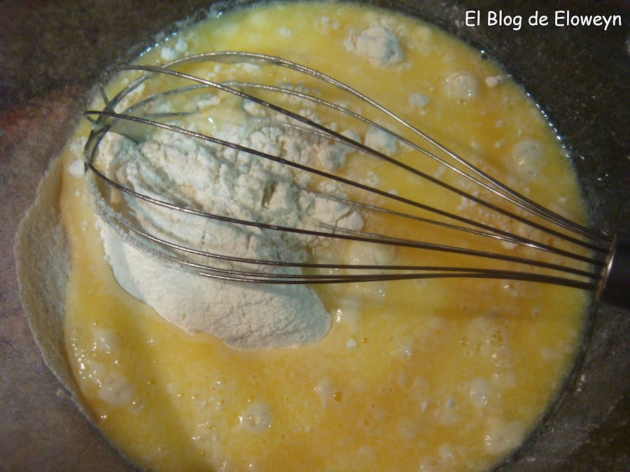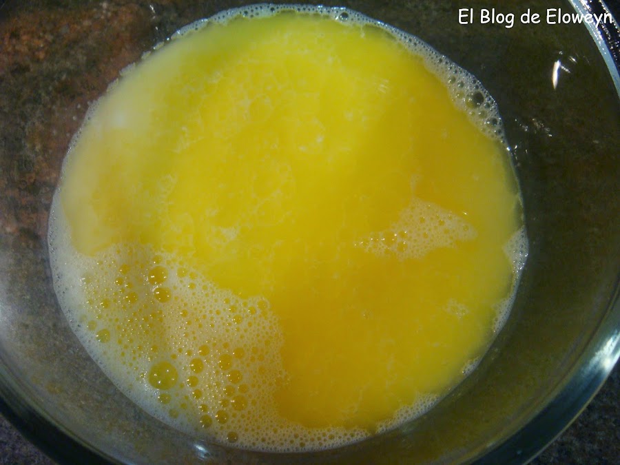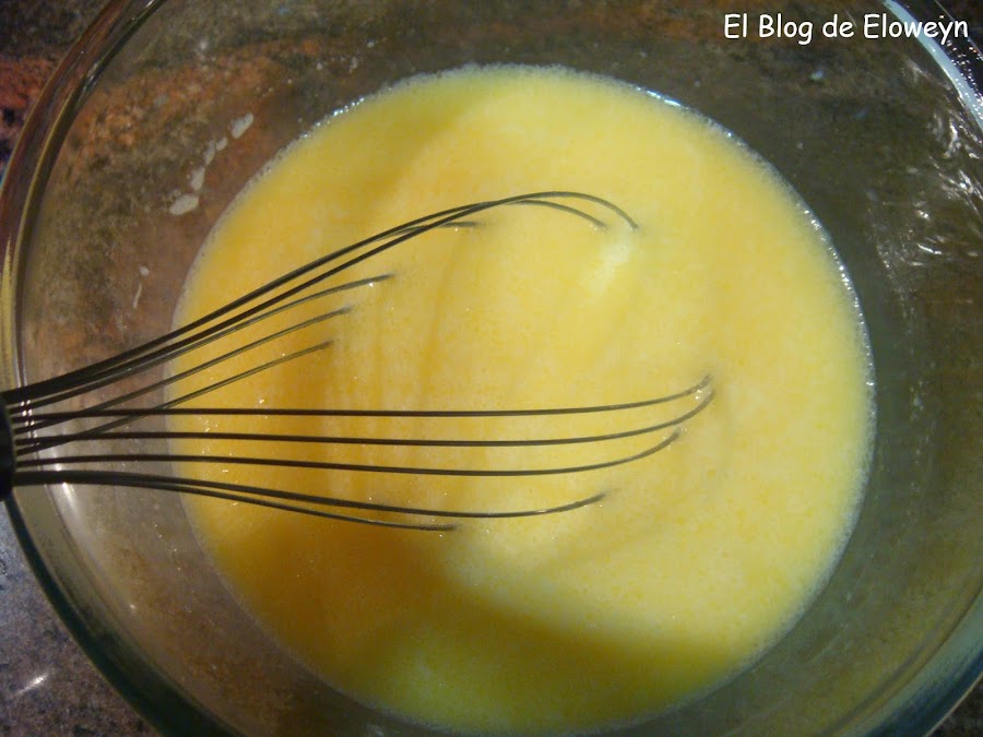 Añadir a los huevos batidos la leche, el agua y la mantequilla fundida.