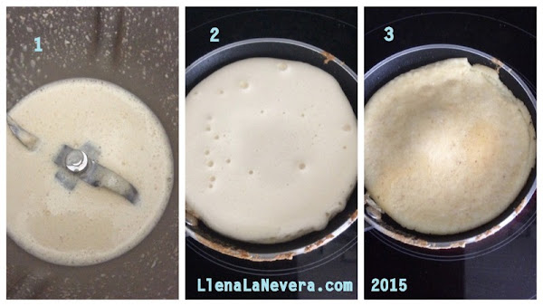 Y ya está listo para cocinar en sartén, yo uso una muy pequeña que me parece ideal para este uso, ya que la masa queda bastante recogida con lo que se cocina bastante bien. Le añado un poquito de aceite de coco, espero unos minutos hasta que cuaje y les doy la vuelta.