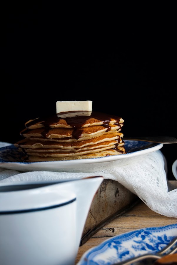 Mis preferidas son (como no) las que llevan su buen chorreón de chocolate, pero las puedes comer con miel, acompañadas de frutas como las fresas, arándanos, frambuesas o plátano, con mantequilla, y como no, el clásico sirope de arce, etc. En fin, muchísimas posibilidades.