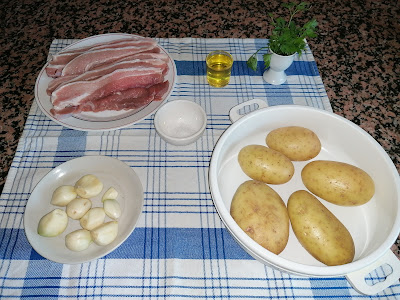 Las patatas mejor que queden algo duras porque así cortarán mejor después y se terminarán de hacer en el horno.