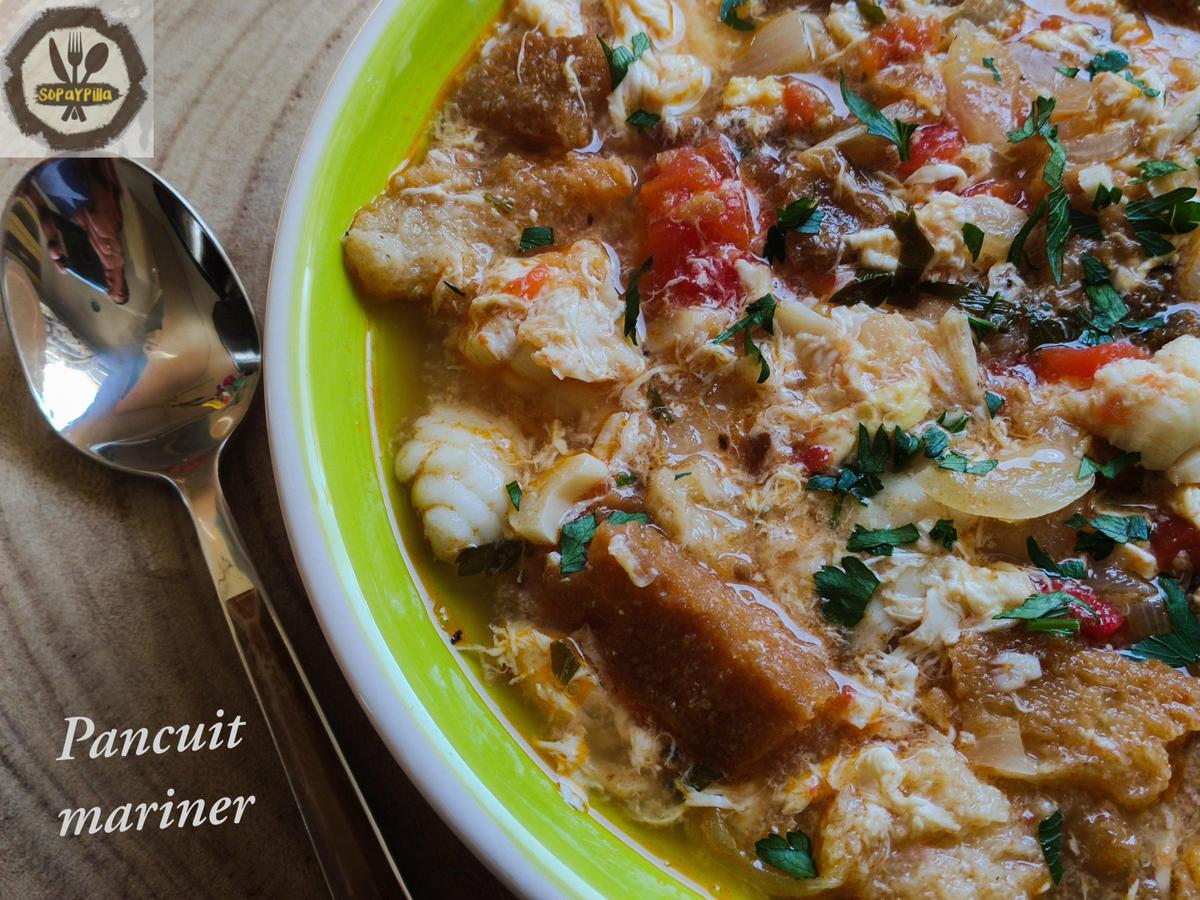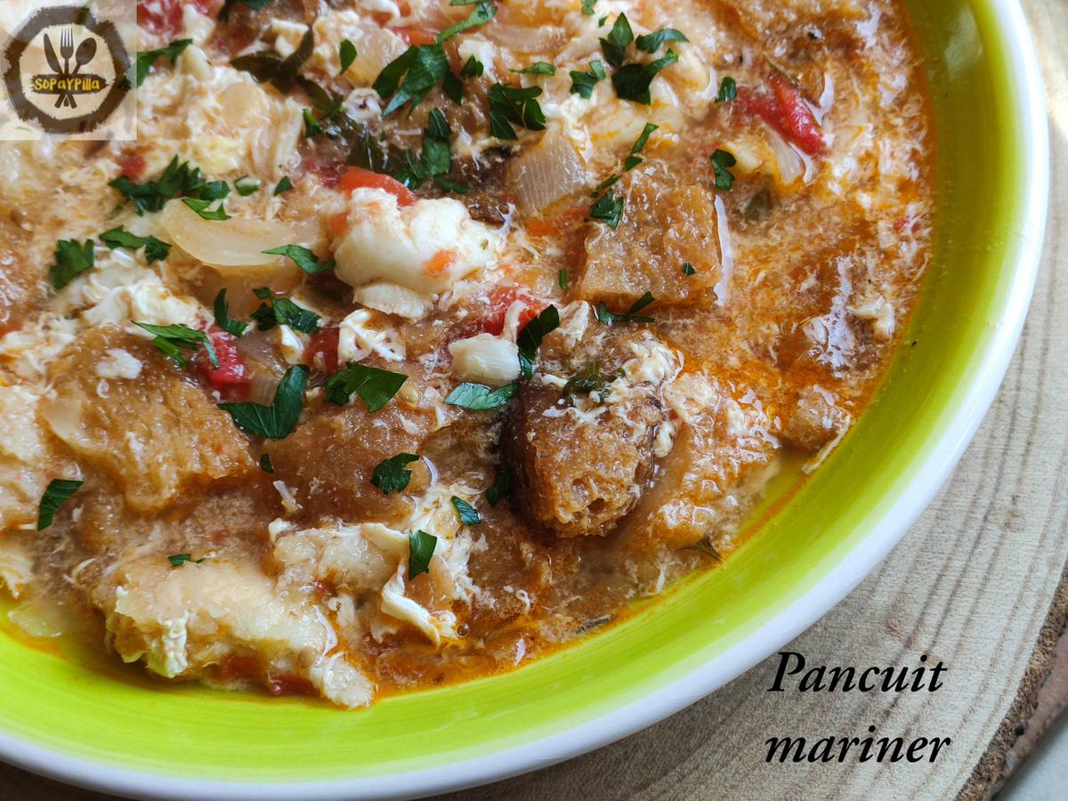 Me encantan los platos sencillos, de antaño, de cuando no se disponía de demasiados ingredientes, probablemente improvisados en la cubierta de un barco, en los largos viajes de pesca. Este es uno de ellos, que se prepara con cualquier trozo de pescado, un sofrito y aprovechando el pan que se ha quedado medio duro o medio blando. Tengo otro pancuit en el blog, sin pescado, si la quieres ver te dejo el enlace a la entrada de Pancuit Mallorquí, otra joya de receta, que debería perdurar.