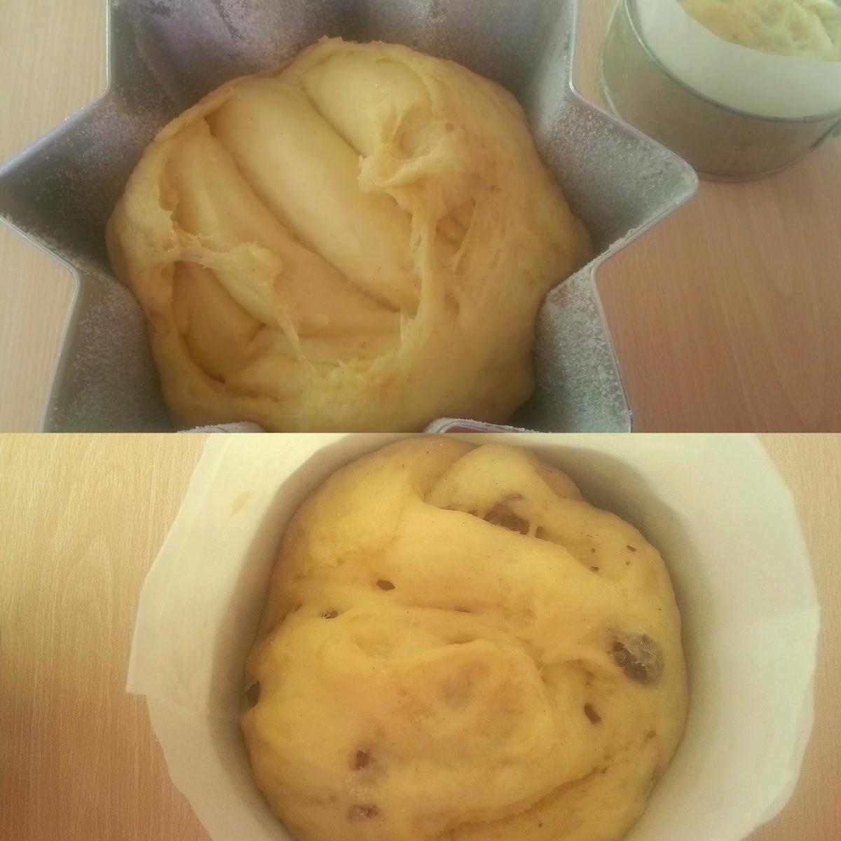 Y por que es tan largo este levado? Por la cantidad de azúcar y huevos que lleva la masa, estos hacen que a la levadura le cueste mucho hacer su trabajo y por ello necesita tiempo suficiente para que pueda levar lo necesario para que este listo para hornear.