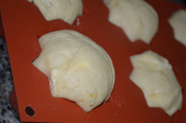 Estiramos un poco con la masa cortamos en 6 partes iguales, hacemos unas bolas y colocamos en los moldes dejamos reposar 40 min.