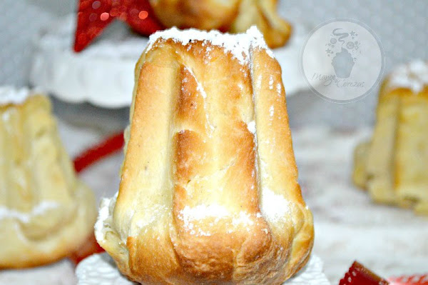 Se dice que El Pandoro , es el antepasado directo del panettone, típico de la Navidad en la cuidad de Verona, su nombre proviene de "Pan doro", "pan de oro" al probarlo sabrás el porque, es un pan tan suave, se rasga con facilidad, con sabores intensos, que conquista a cualquiera, suele ser una masa trabajosa lleva varios días de preparación, esta versión la encontré en Travolategusto, es mas rápida y fácil; aunque tuve que hacerla 3 veces, a lo mejor por problemas en la traducción no entendía bien el procedimiento e ingrediente y que la receta es con amasadora que no tengo, lo he ajustado un poco y se hizo la magia una de las mejores recetas que he realizado.