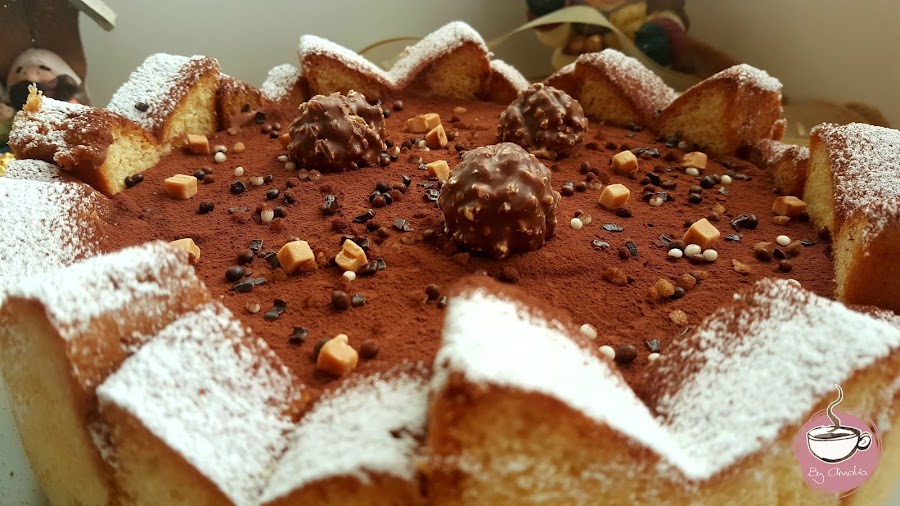 Antes de desmoldarla y servirla, decorarla al gusto. Espolvorear los picos del pandoro con azúcar glas y decorar con bombones y perlas de chocolate.